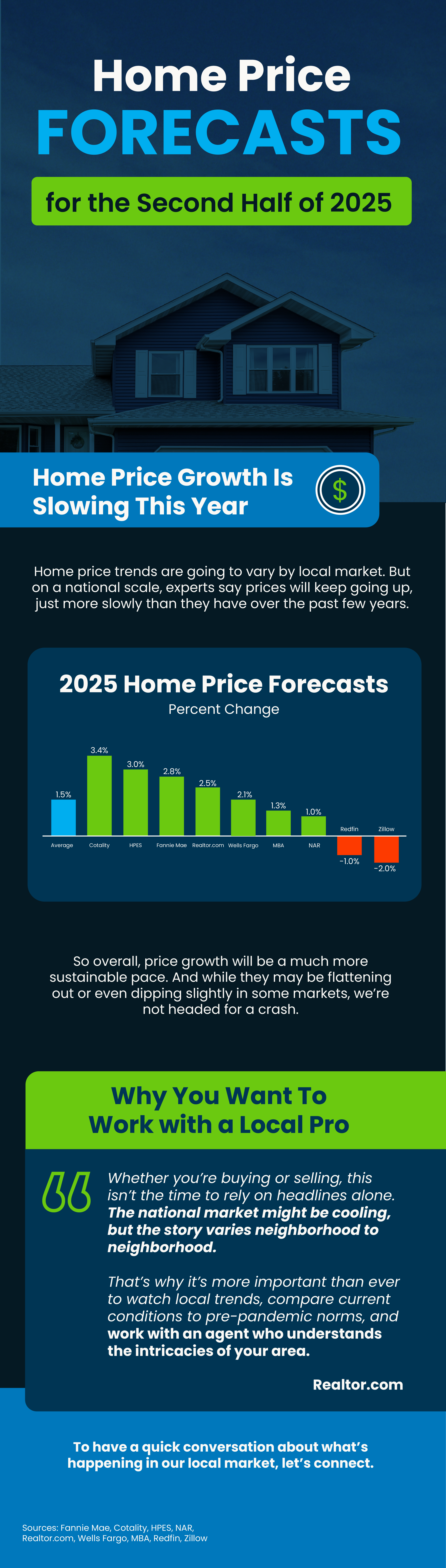 With all the headlines circulating recently, you may be wondering what’s next for home prices? Here’s what the expert forecasts say. Home prices are still forecast to rise nationally this year, just at a much slower pace. But price trends are going to vary by area. To have a quick conversation about what’s happening in our local market, let’s connect.